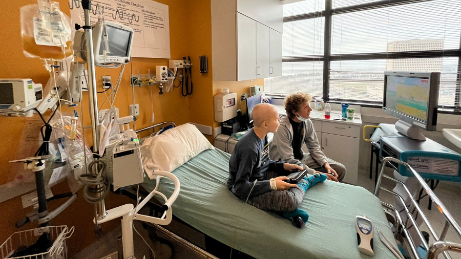 Recently, Patrick received lumbar puncture chemotherapy, and his brother was able to come to the hospital with him. The staff at Texas Children’s Hospital rolled the Starlight Gaming Station into his procedure room so Patrick and his brother could play together! They spent hours playing Mario Bros. while Patrick got his transfusion — a perfect way to pass the time during a difficult and uncomfortable procedure.